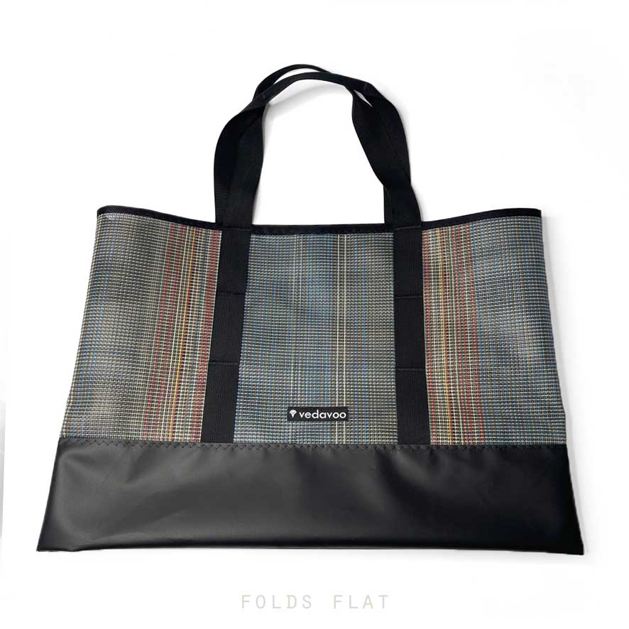 Full-sized, carry-all tote bag made with double-layer Vent-Mesh fabric, which lets your gear breathe without sacrificing structure and durability.  The one-piece vinyl base blocks (or captures) mess and sets a sturdy foundation to keep the bag standing tall.  Folds flat for easy storage.  Perfect as a wader bag, rope bag, at the beach, or when shopping.