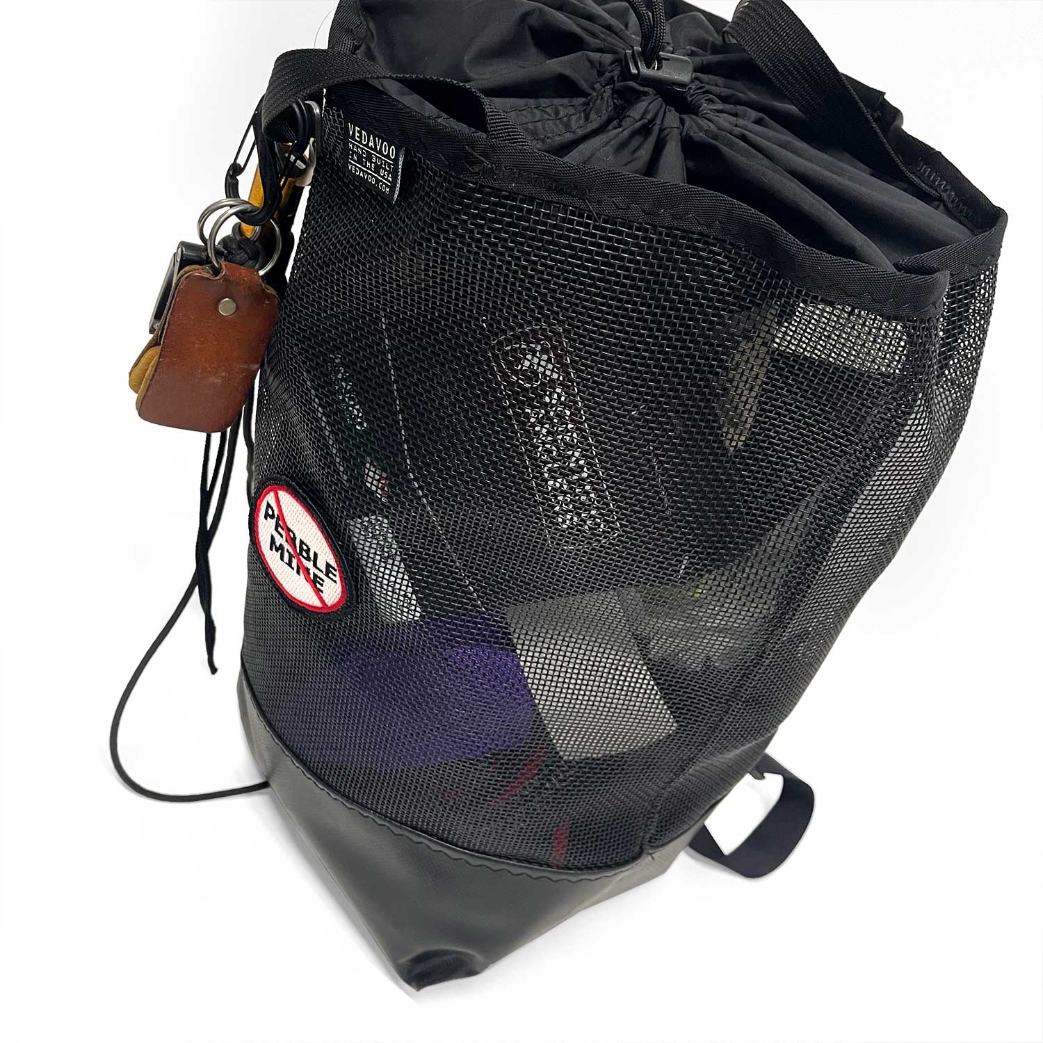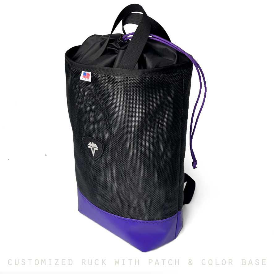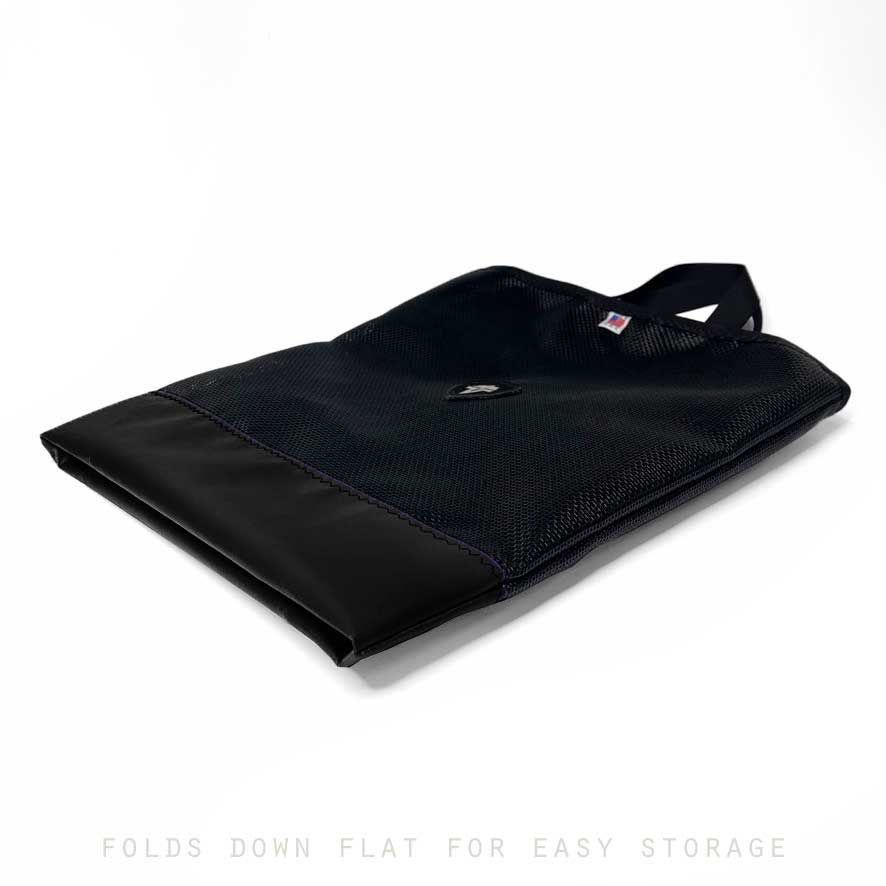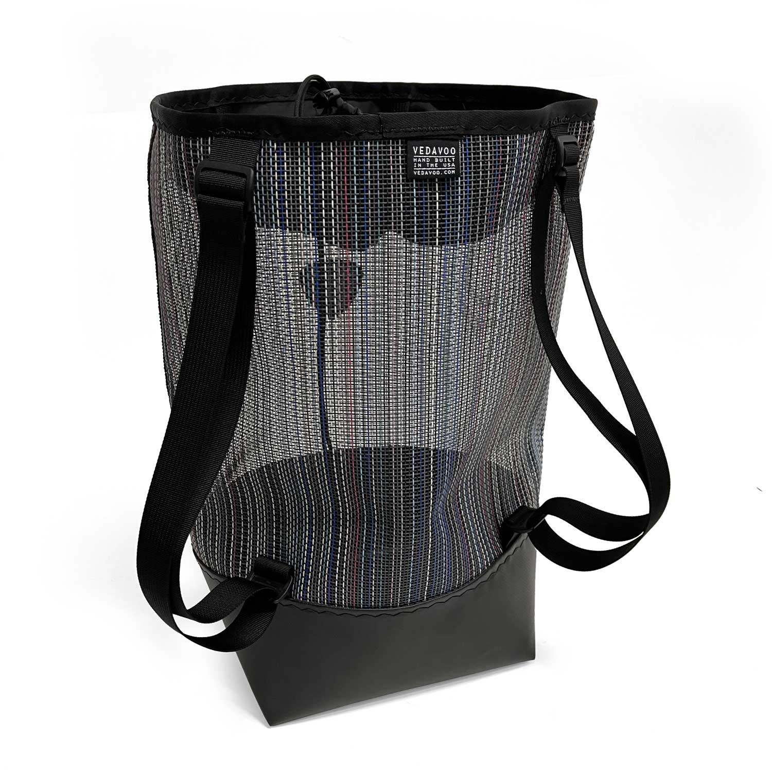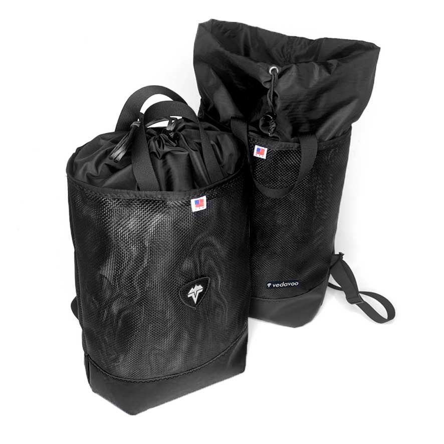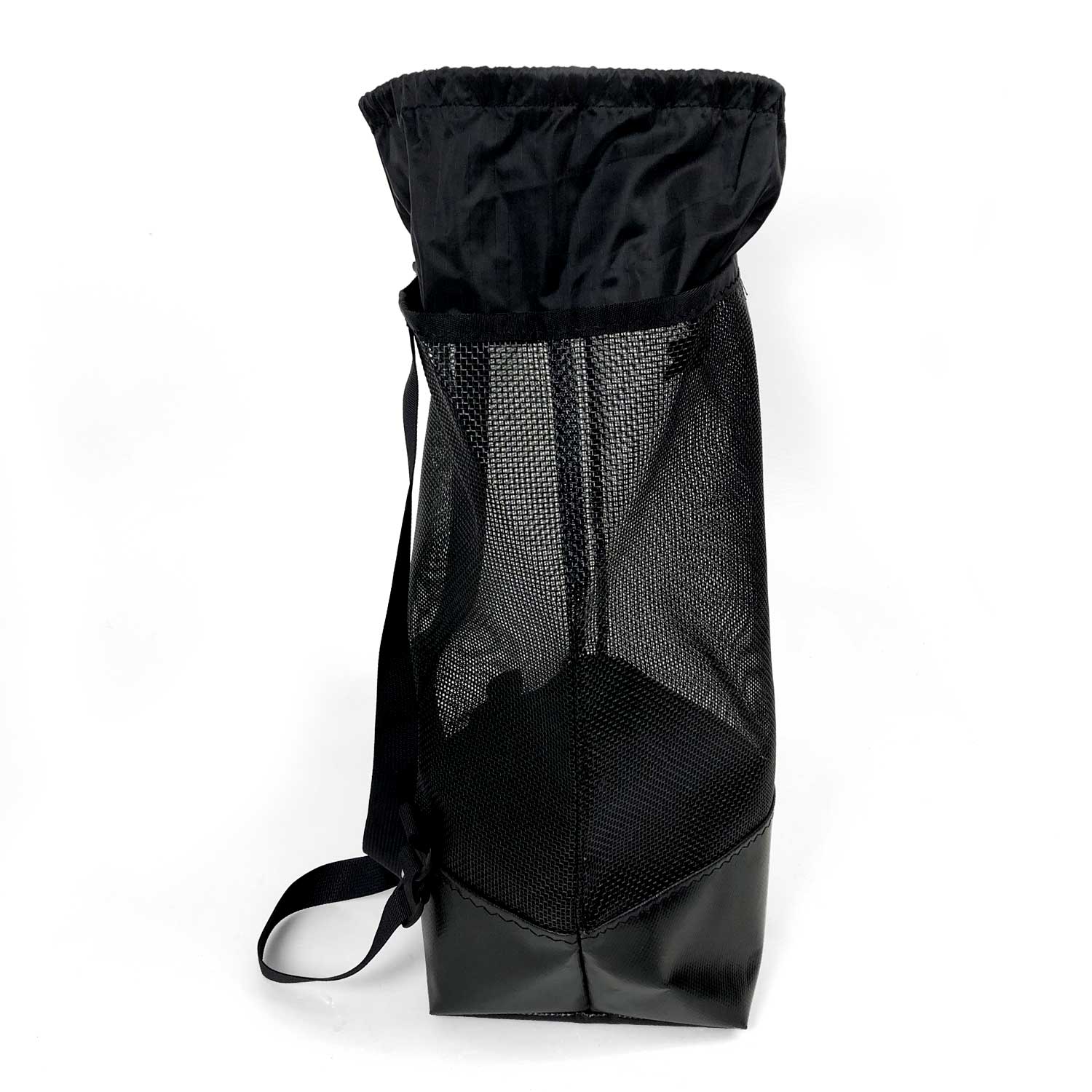 Convertible, carry-all ruck sack / tote made with double-layer Vent-Mesh fabric, which lets your gear breathe without sacrificing structure and durability.  The one-piece vinyl base helps block (or capture) mess and sets a sturdy foundation to keep the bag standing tall.  Lightweight Ripstop Top with Drawstring Closure for Easy Access, and Removable 1.5" Webbing Harness for easy conversion between ruck and tote style carry.  Folds flat for easy storage.
